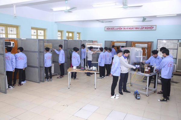 Giờ thực hành nghề Kỹ thuật máy lạnh và điều hoà không khí tại khoa Điện tử – Điện lạnh trường cao đẳng cơ khí nông nghiệp